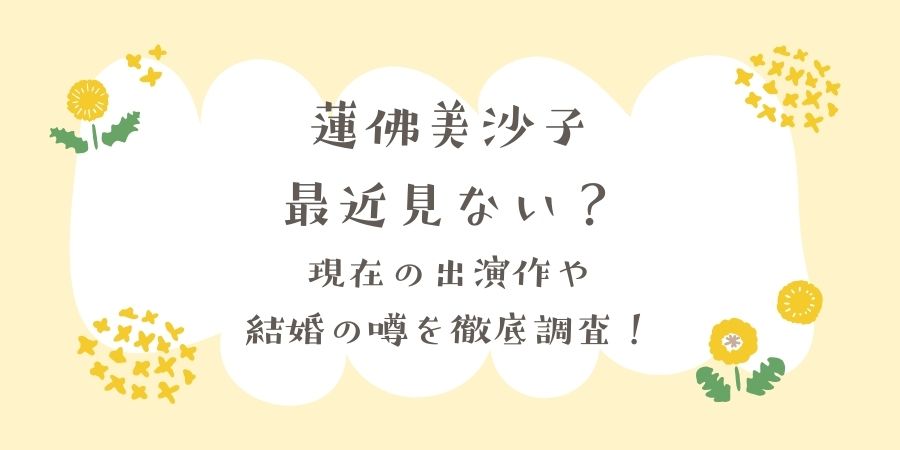 蓮佛美沙子を最近見ない?現在の出演作や結婚の噂を徹底調査!